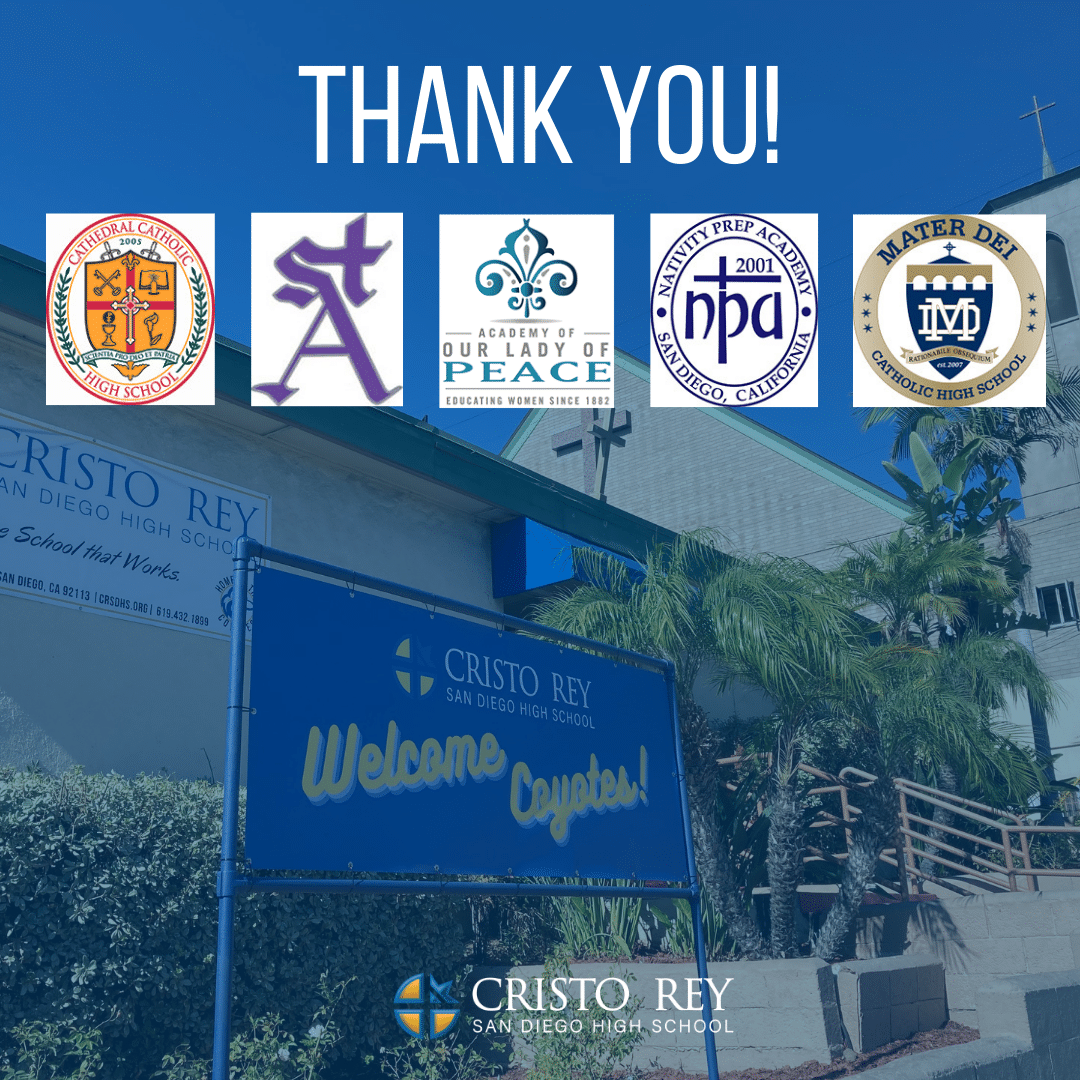 “As a board member for Cristo Rey San Diego, I was meeting with their Chief Advancement Officer, Beth Nicar, to discuss progress at the school. When Beth brought up the upcoming classroom renovations, it immediately dawned on me that our local Catholic high schools, including Cathedral Catholic, could support the effort,” says Kevin J. Calkins, Ph.D., Cathedral Catholic’s President. “I contacted Fr. Boom Martinez at Mater Dei Catholic, Dr. Lauren Lek at Academy of Our Lady of Peace, and Mr. Ed Hearn at St. Augustine High School, and they all agreed to support Cristo Rey’s classroom renovations. I was delighted for Cristo Rey, but I was also proud of our Catholic high school community. This is a sign of solidarity for our San Diego Catholic community.”